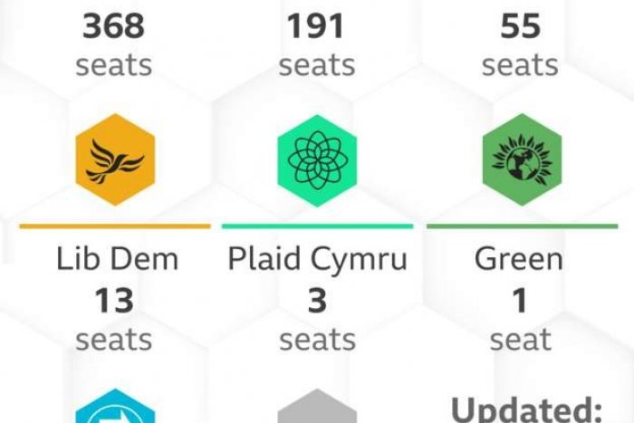 Johnson získal 368 kresiel v 650-mandátovej Dolnej snemovni., teda absolútnu väčšinu a Corbyn len 191, čo znamená pravdepodobne jeho politickú smrť. Škótska národná strana 55, Liberálni demokrati 13 mandátov.