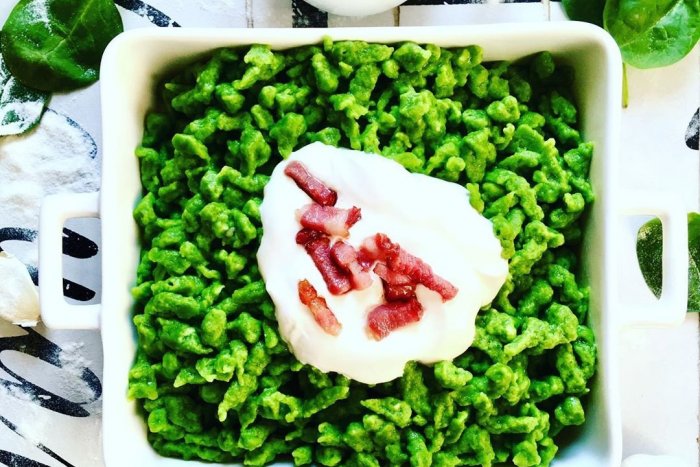 Recept na špenátové halušky so smotanou a slaninkou