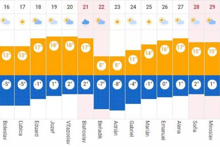 Maximálne denné teploty by sa mali prepadnúť na +3 až +8 °C, ale už v nasledujúcom týždni budú teploty stúpať opäť poriadne vysoko.