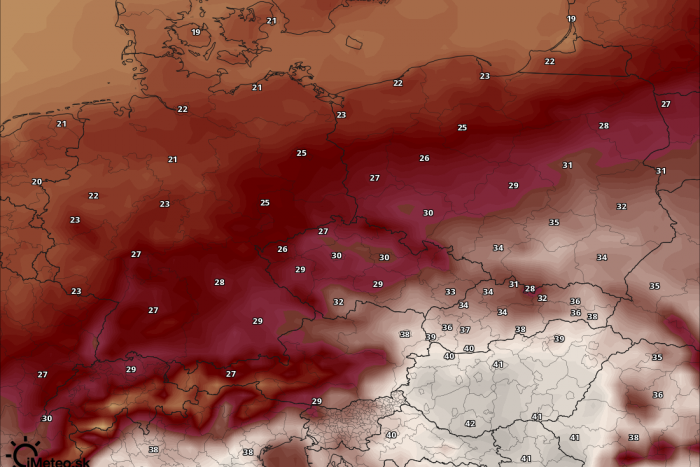 Výpočet numerického modelu je jedna vec, no my odhadujeme, že reálnejšie teploty pokoria hranicu +40°C v piatok alebo v sobotu. Vo štvrtok sa totiž nad našou oblasťou bude rozpadávať studený front, ktorý veľa zrážok síce neprinesie, ale podstatná bude oblačnosť, ktorá výraznejšiemu prehrievaniu bude brániť. V ďalších dňoch však už bude menej oblačnosti a teploty by tak mali byť aj vzhľadom na prehrievanie zemského povrchu v predchádzajúcich dňoch výraznejšie.