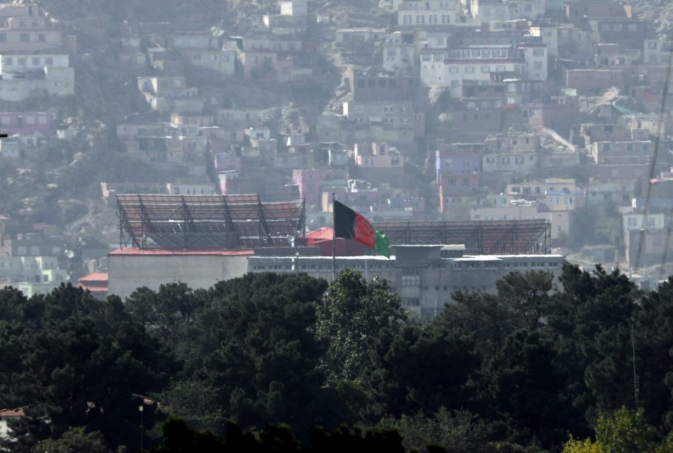 Afganská vlajka veje na prezidenstskom paláci.