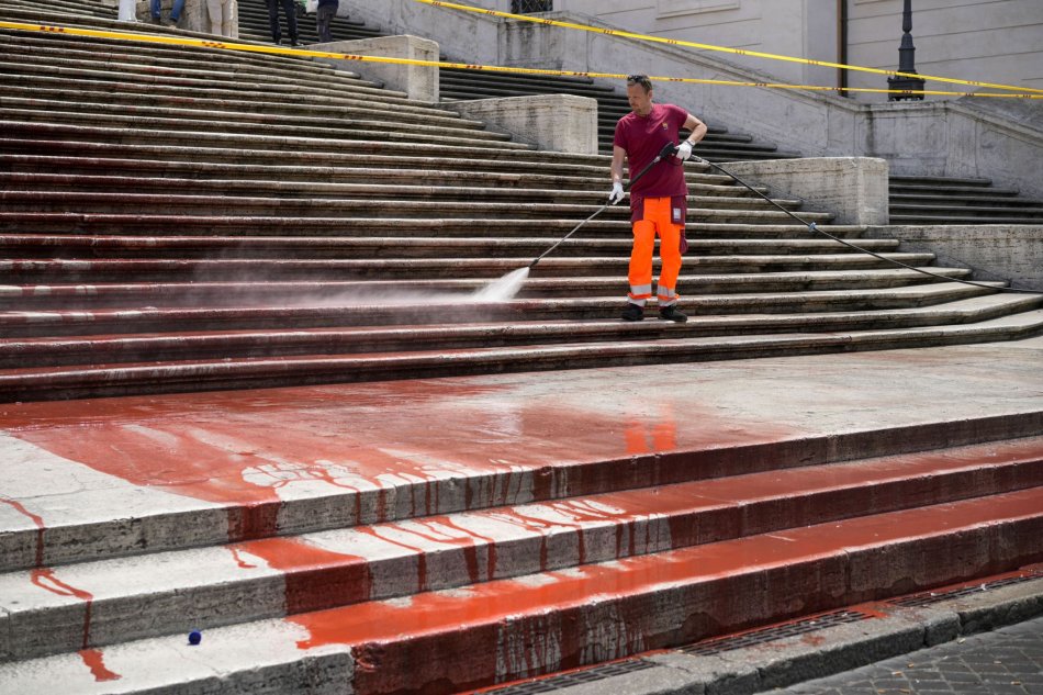 Galéria k článku Aktivisti sa opäť predviedli: SVETOZNÁME schody v Ríme poliali červenou farbou, FOTO