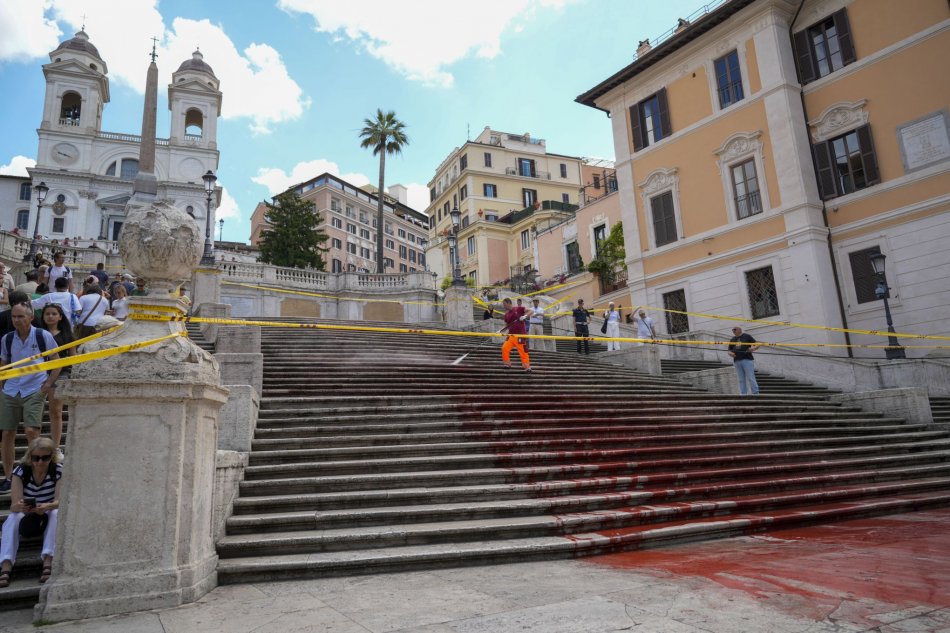 Galéria k článku Aktivisti sa opäť predviedli: SVETOZNÁME schody v Ríme poliali červenou farbou, FOTO