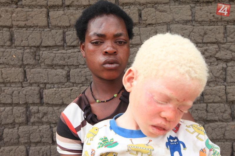 Edna Cedricková drží svojho zachráneného syna albína v meste Machinge