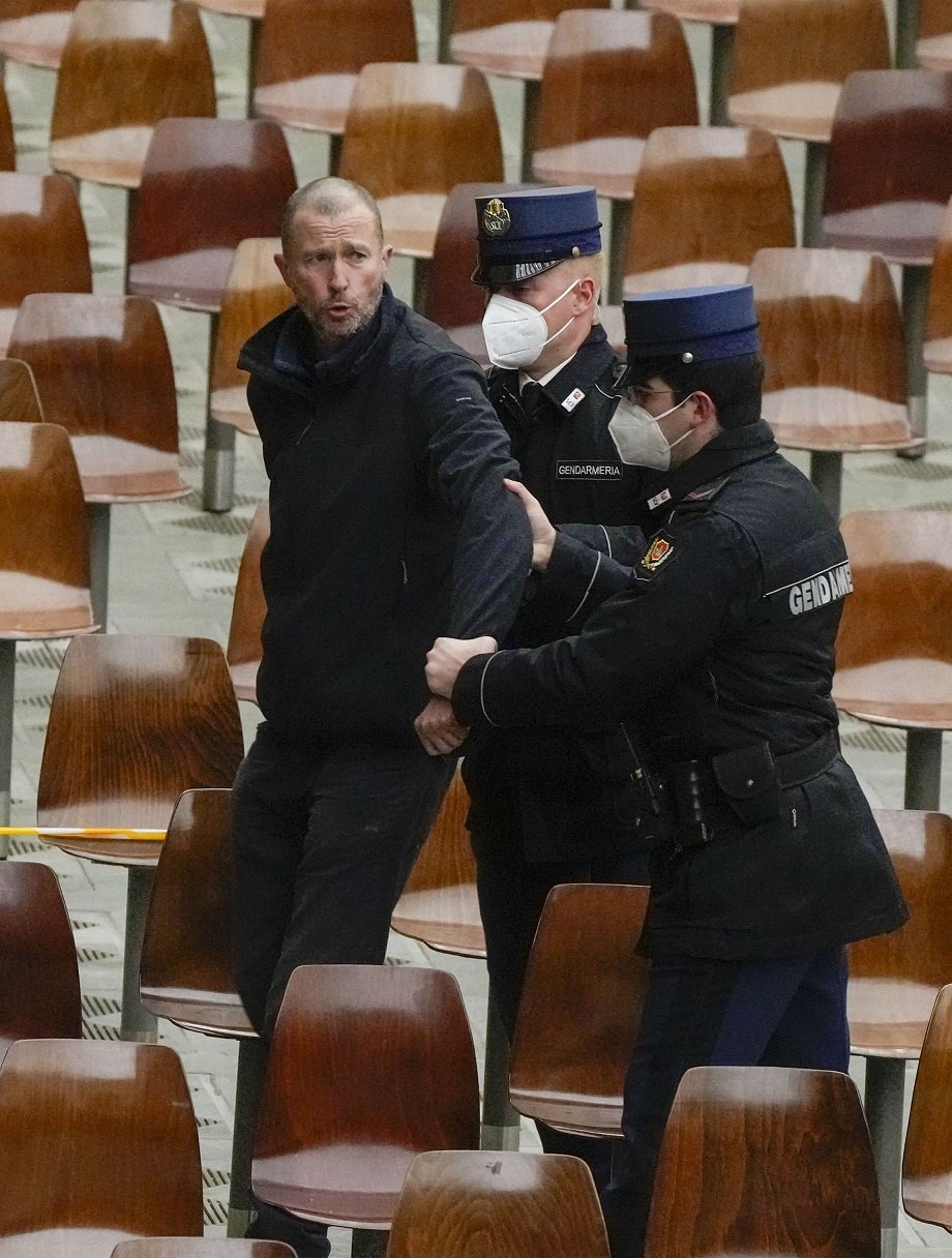 Galéria k článku Audienciu pápeža prerušil muž bez rúška: Toto nie je Božia cirkev, kričal