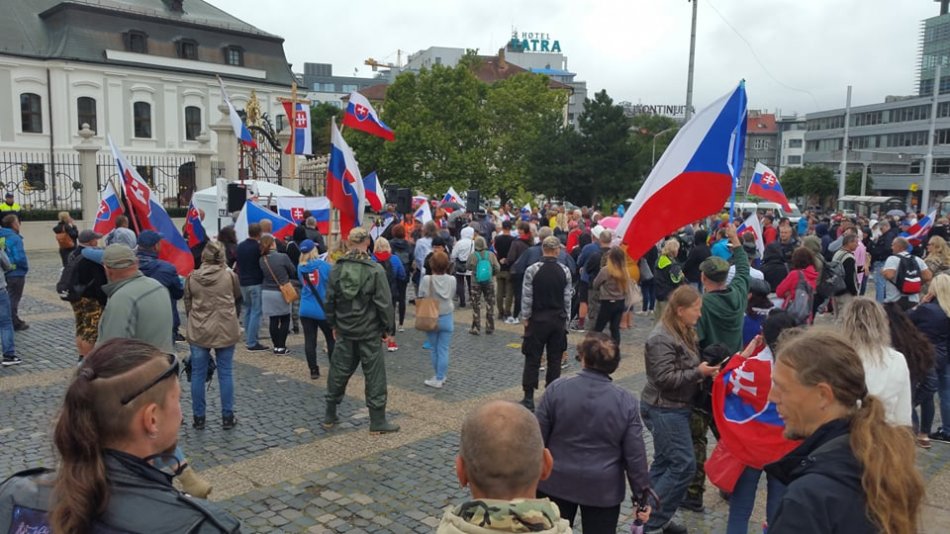 Galéria k článku Demonštranti v Bratislave opäť ZABLOKOVALI cestu: Zasahujú policajní ťažkoodenci + FOTO