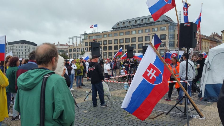 Galéria k článku Demonštranti v Bratislave opäť ZABLOKOVALI cestu: Zasahujú policajní ťažkoodenci + FOTO