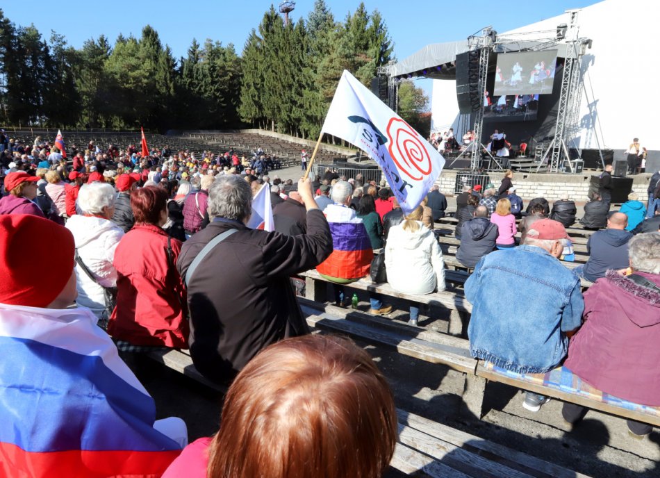 Na snímke účastníci protivládneho podujatia "čapicový protest", ktorý zorganizoval poslanec Národnej rady SR (NR SR) Robert Fico (Smer-SD), ku ktorému sa pridali strany SNS a Republika v Rimavskej Sobote 17. októbra 2021.