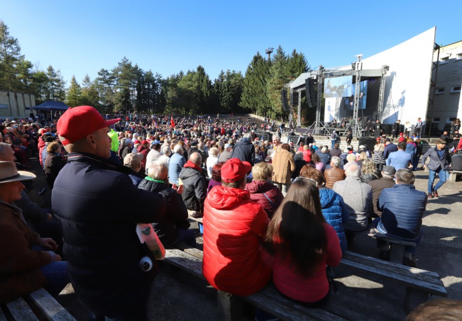 Na snímke účastníci protivládneho podujatia "čapicový protest", ktorý zorganizoval poslanec Národnej rady SR (NR SR) Robert Fico (Smer-SD), ku ktorému sa pridali strany SNS a Republika v Rimavskej Sobote 17. októbra 2021.