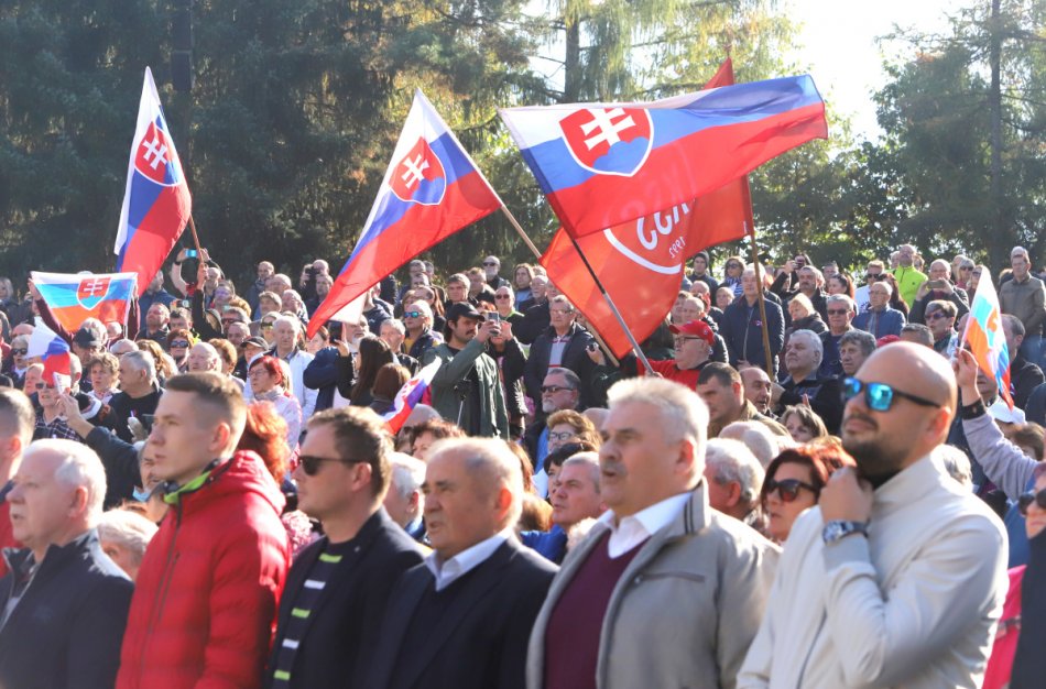 Na snímke účastníci protivládneho podujatia "čapicový protest", ktorý zorganizoval poslanec Národnej rady SR (NR SR) Robert Fico (Smer-SD), ku ktorému sa pridali strany SNS a Republika v Rimavskej Sobote 17. októbra 2021.
