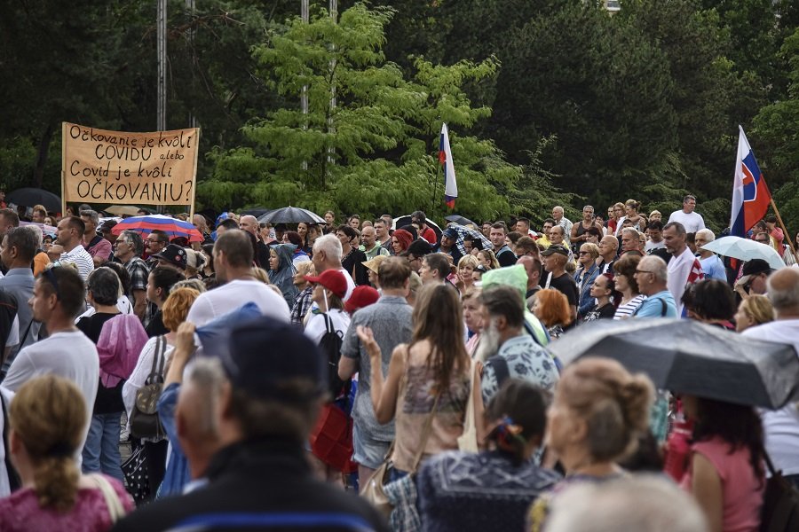 Galéria k článku Ďalší protest proti opatreniam: Pred Úradom vlády sa stretli stovky ľudí, FOTO