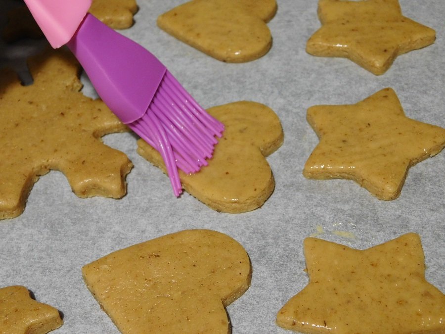 Poukladané medovníčky nezabudnite potrieť vyšľahaným vajíčkom.