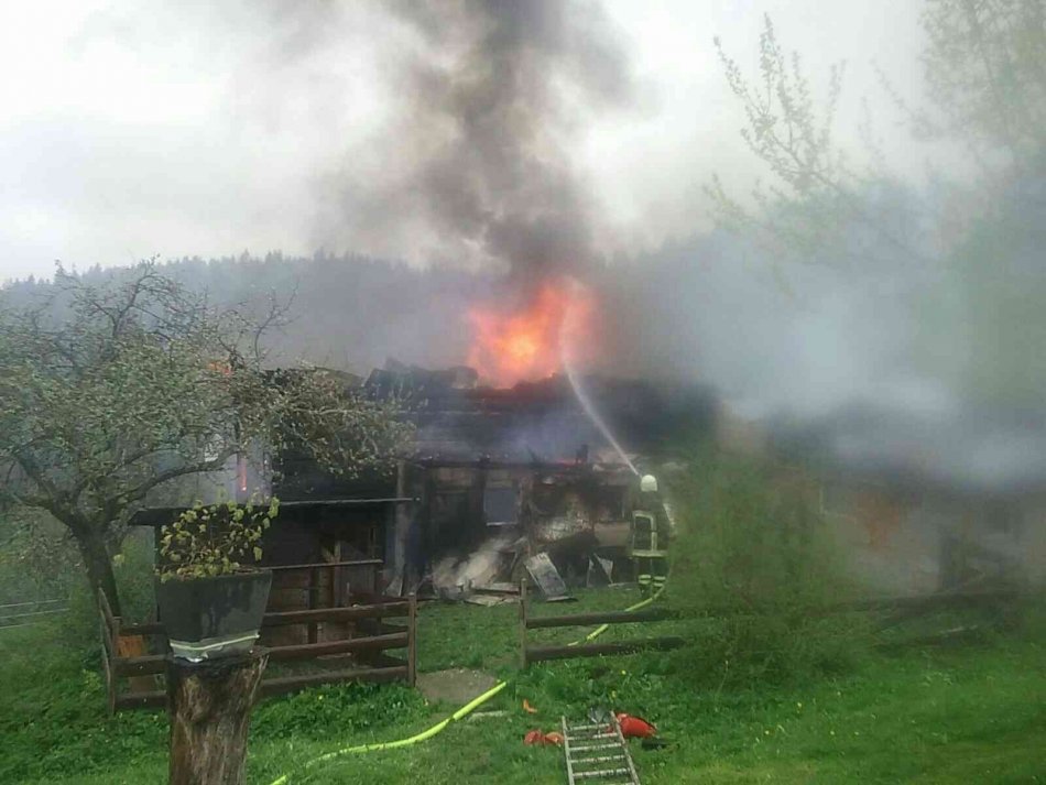 Galéria k článku Desiatky hasičov v nasadení v náročnom teréne: Na severe horela drevenica, FOTO