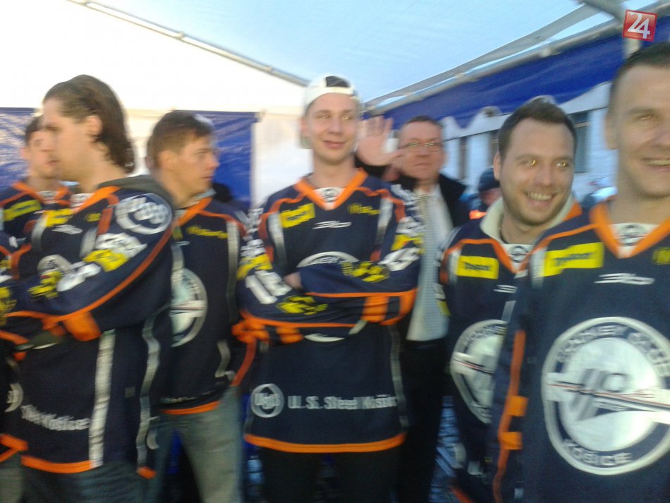 Galéria k článku FOTO: Košickí hokejisti sa podelili o radosť z titulu, stovky ľudí v centre si počkali na majstrov!