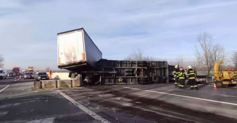 Galéria k článku Zverejnili autentické VIDEO desivej nehody: Kamión dostal defekt a PRERAZIL zvodidlá!