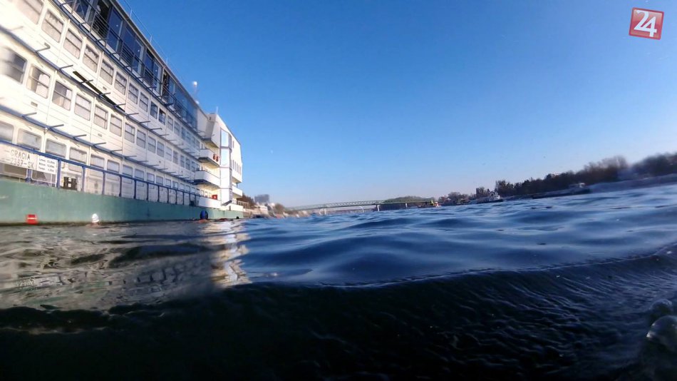 Galéria k článku FOTO: Otužilci zhodili kabáty a zaplávali si v ľadových vlnách Dunaja