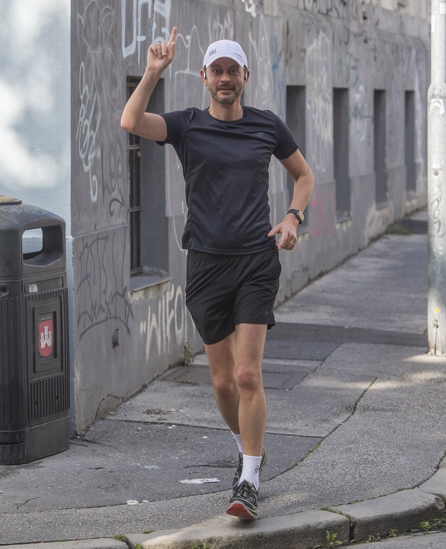 Galéria k článku Netypický výjav v uliciach Bratislavy: Vysmiaty Heger v šiltovke beží do práce, FOTO