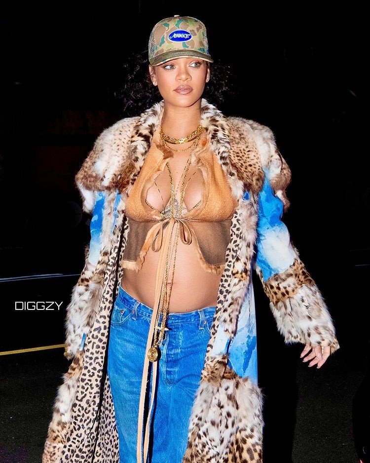 Galéria k článku Outfity, z ktorých mrazí: Budúca mamička Rihanna predvádza v ZIME holé bruško, FOTO
