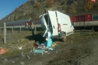 FOTO: V Tlmačoch sa zrazil rýchlik s asi 500 cestujúcimi s dodávkou