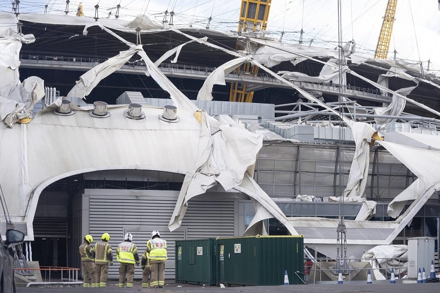Galéria k článku Neľútostná víchrica Eunice: Európa hlási obete, v Londýne strhlo strechu O2 arény, FOTO