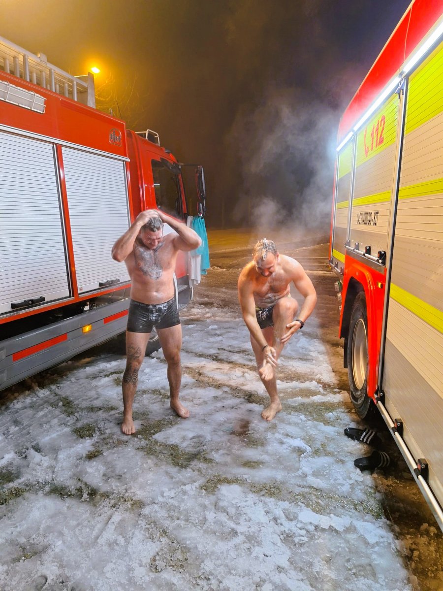 Galéria k článku Ženy sa nevedia vynadívať: Hasiči sa v mraze sprchovali vonku len v trenírkach!