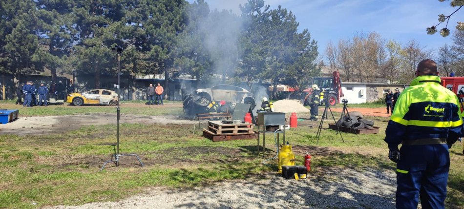 Galéria k článku Elektromobily sú nočná MORA hasičov: Vyskúšali si, ako zvládnuť ich požiar