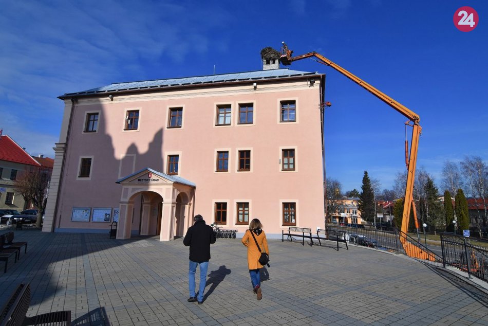 Galéria Hniezdo bociana na mestskom úrade upravili: Vážilo viac ako tonu