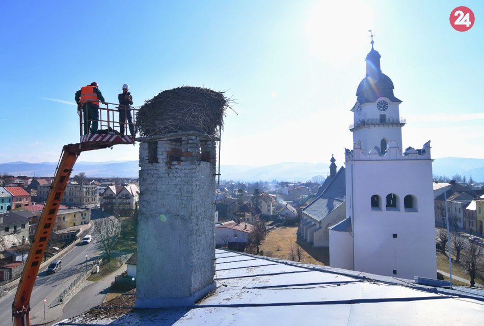 Galéria Hniezdo bociana na mestskom úrade upravili: Vážilo viac ako tonu