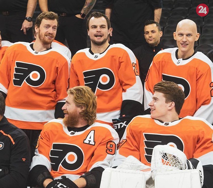 Galéria k článku Krásne gesto hokejistov Philadelphie: Na tímové fotenie pozvali spoluhráča s rakovinou! FOTO