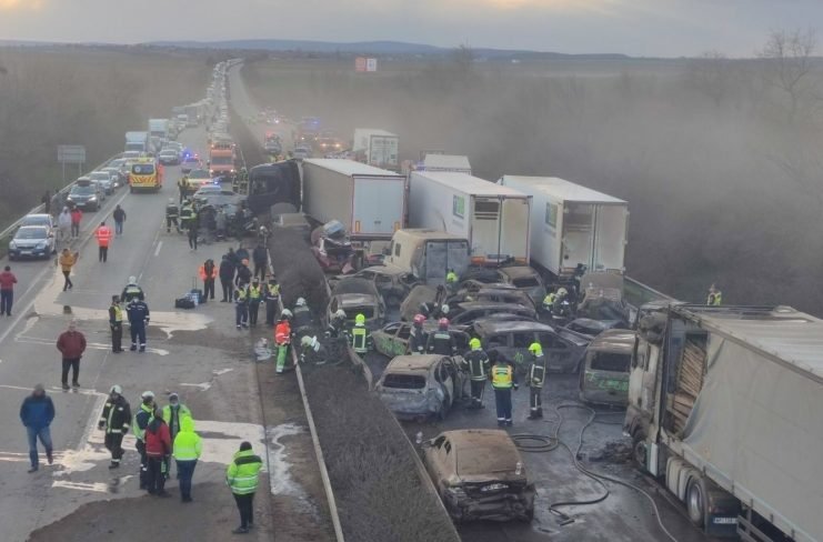 Galéria k článku STRAŠNÉ zábery: Pri havárii na diaľnici sa zrazilo 37 áut, až 19 z nich ZHORELO! +FOTO