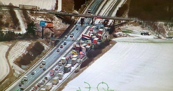 Galéria Hromadná nehoda 40 áut zablokovala diaľnicu D5 v smere na Prahu