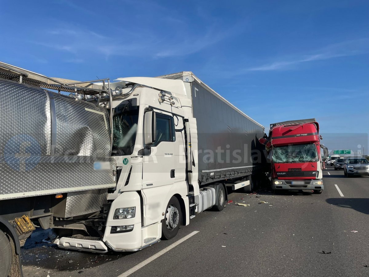 Galéria k článku HROMADNÁ zrážka viacerých nákladných áut: Po ceste tečú hektolitre MLIEKA! +FOTO