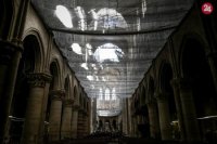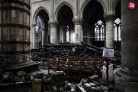 Interiér požiarom poškodenej katedrály Notre-Dame