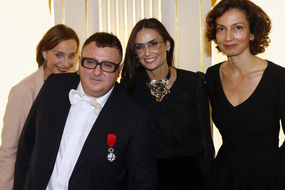 módny návrhár Alber Elbaz, francúzska ministerka kultúry Audrey Azoulayová (vpravo), herečky Kristin Scottová Thomasová (vľavo) a Demi Mooreová