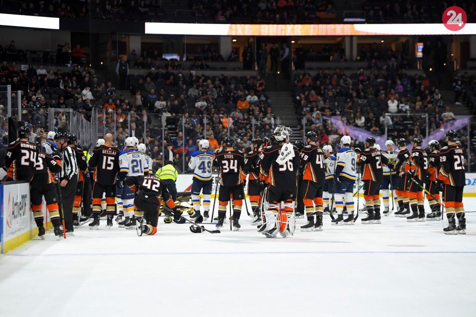 Počas zápasu NHL medzi St. Louis a Anaheimom po kolapse obrancu Bouwmeestera tuhla krv v žilách.