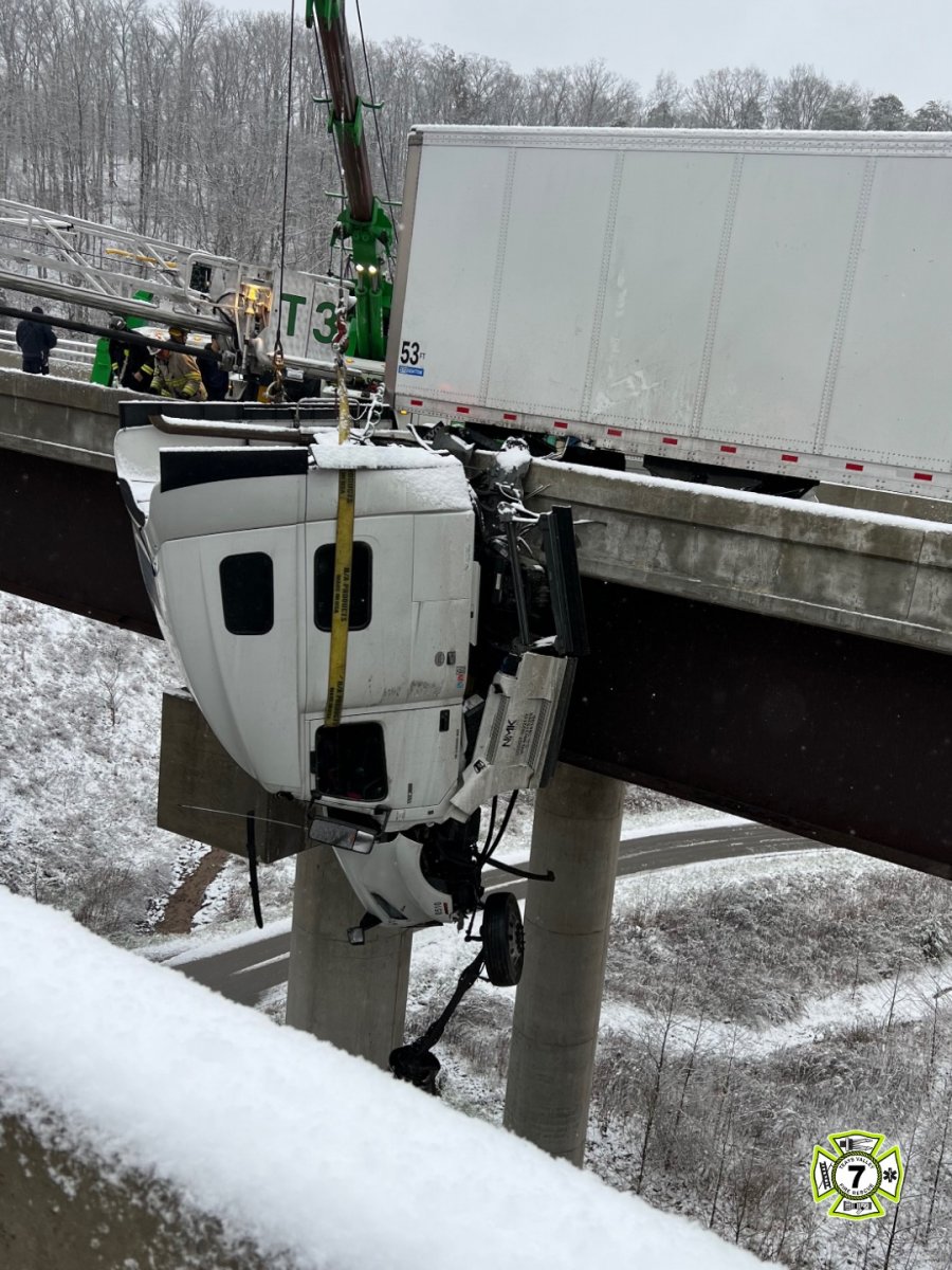 Galéria k článku Kabína kamióna visela z mosta vo výške 30 METROV! Vodiča zachránili po 5 hodinách
