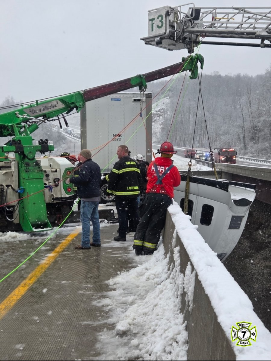Galéria k článku Kabína kamióna visela z mosta vo výške 30 METROV! Vodiča zachránili po 5 hodinách
