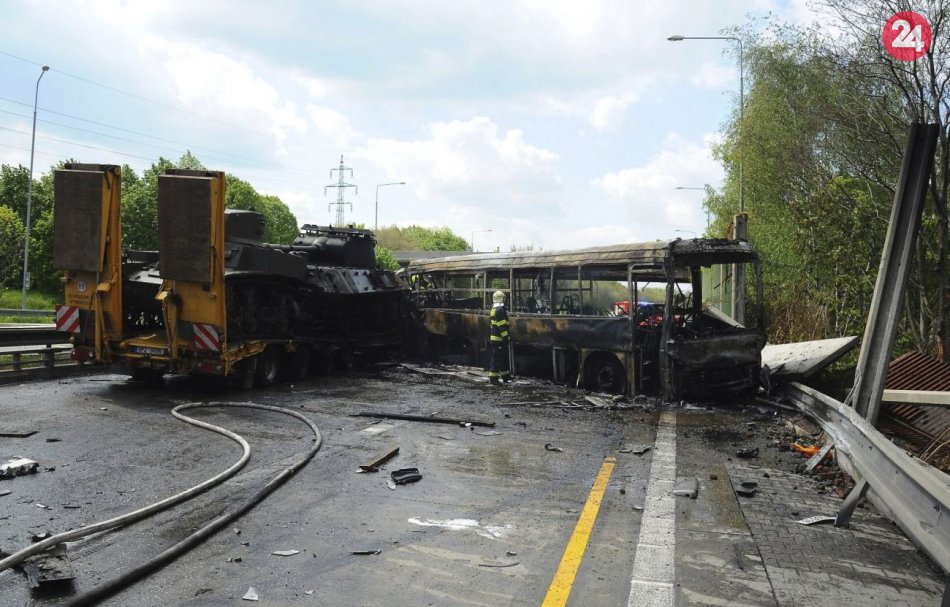 Galéria Kamión prevážajúci tanky sa zrazil s väzenským autobusom