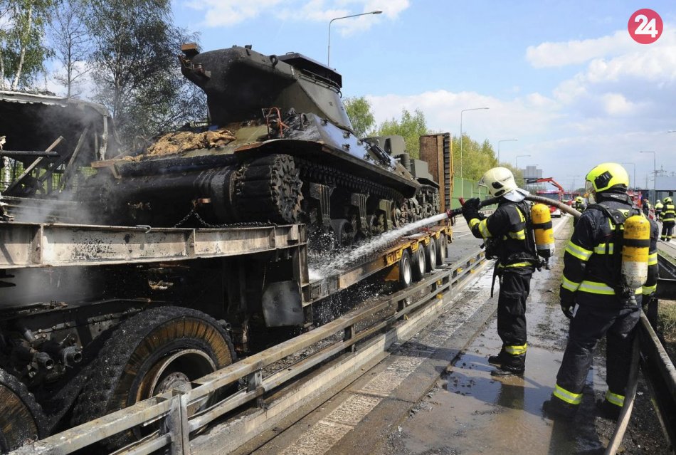 Galéria Kamión prevážajúci tanky sa zrazil s väzenským autobusom
