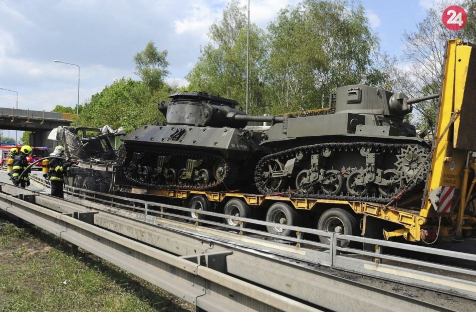 Galéria Kamión prevážajúci tanky sa zrazil s väzenským autobusom