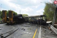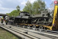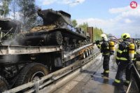 Kamión prevážajúci tanky sa zrazil s väzenským autobusom