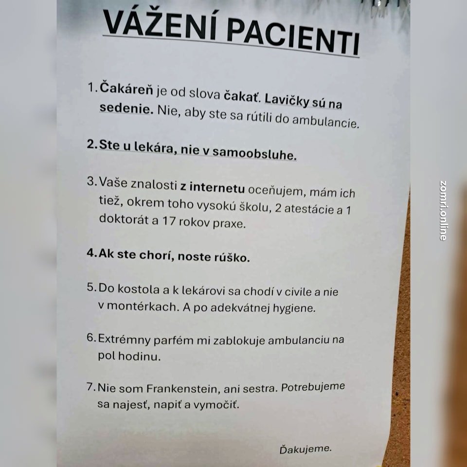 Galéria k článku Lekár v čakárni vylepil KONTROVERZNÝ oznam: Slovákov prekvapilo 7 PRAVIDIEL pre pacientov!