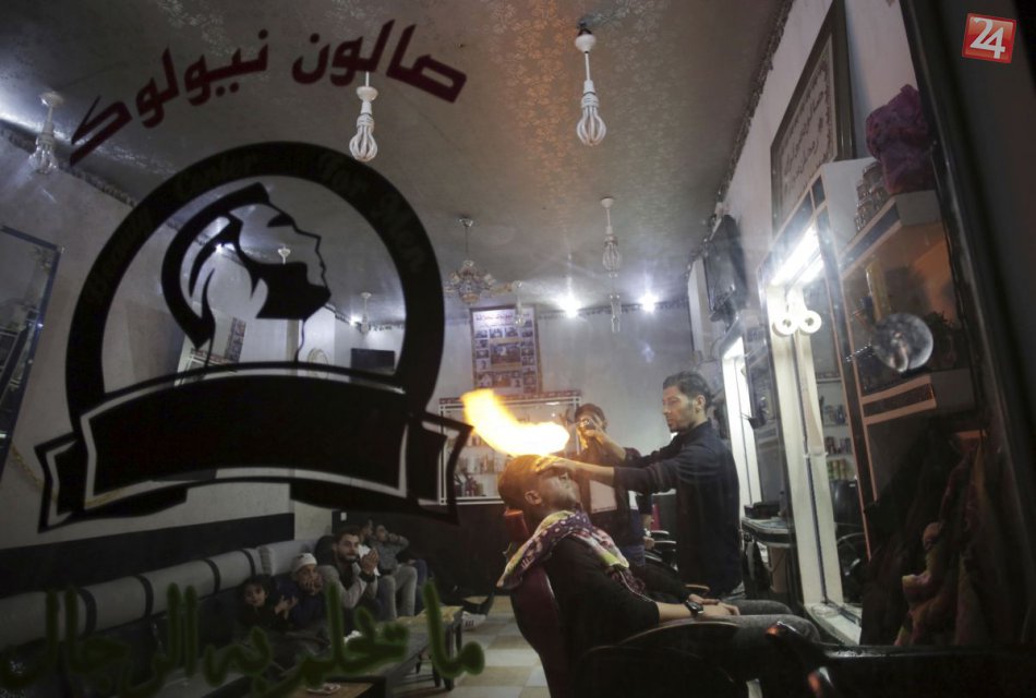 Galéria KURIOZITA DŇA: Palestínsky kaderník "strihá" zákazníkov plameňom, zapáli im vlas