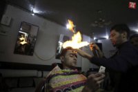 KURIOZITA DŇA: Palestínsky kaderník "strihá" zákazníkov plameňom, zapáli im vlas