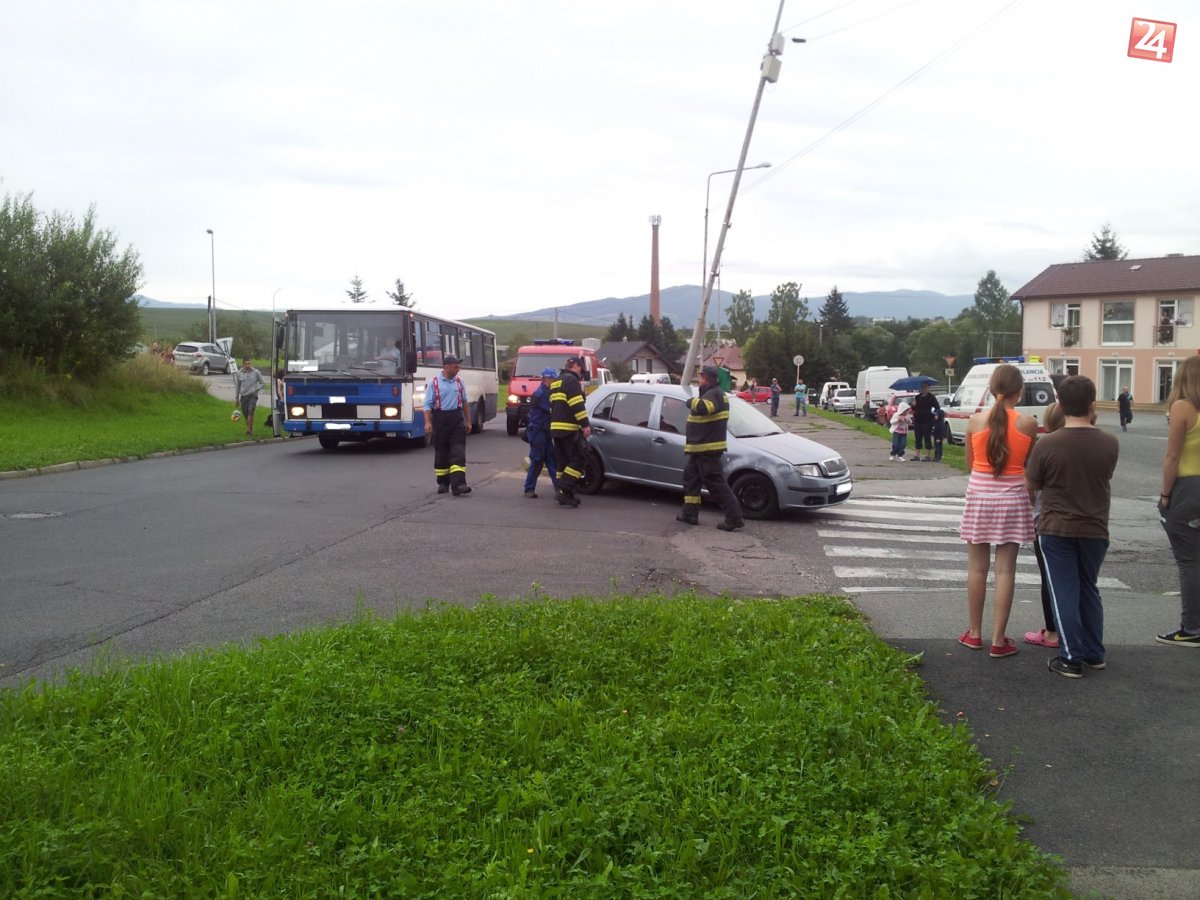 Galéria k článku FOTO: Kuriózna zrážka pútala pozornosť. Auto stlačilo medzi stĺp a autobus!