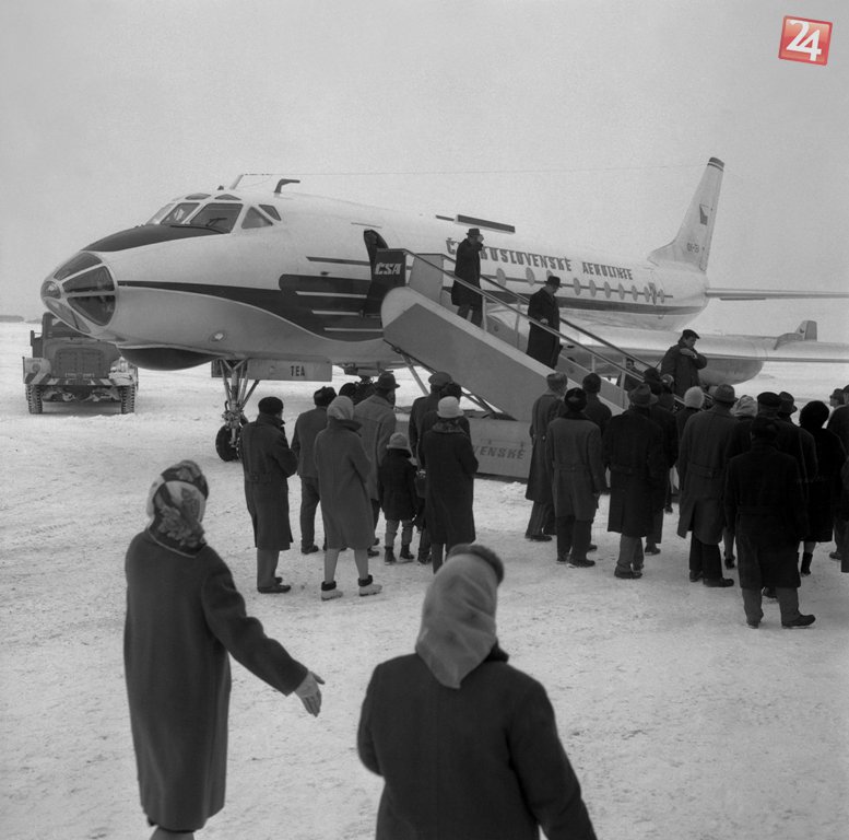 Na košickom letisku pristálo 19. februára 1965 prúdové lietadlo Československých aerolínií TU-124, ktoré nesie značku mesta Mělník.