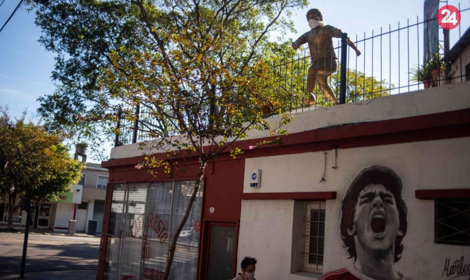 Galéria k článku V Argentíne to myslia s nosením rúšok vážne: Jedno sa ušlo aj Maradonovej soche!
