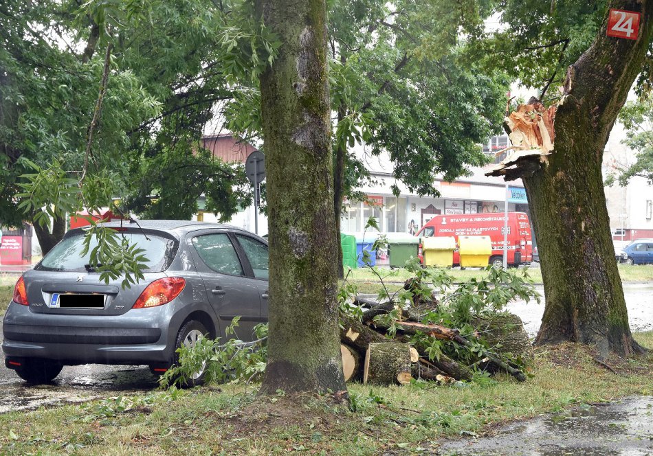 Na snímke polámaný strom po búrke na Moskovskej ulici v Michalovciach v stredu 6. júla 2016.