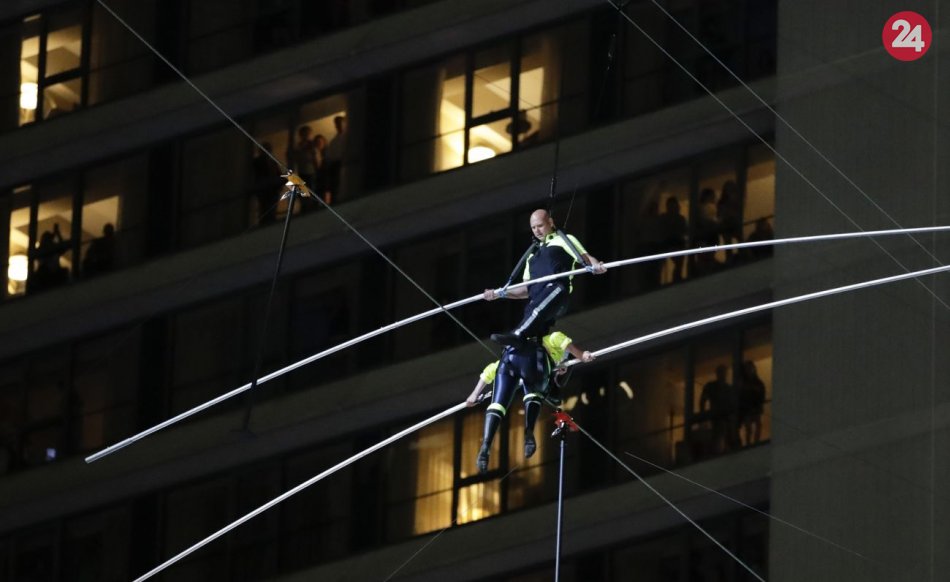 Galéria Nad newyorskou Times Square sa prechádzali povrazolezci