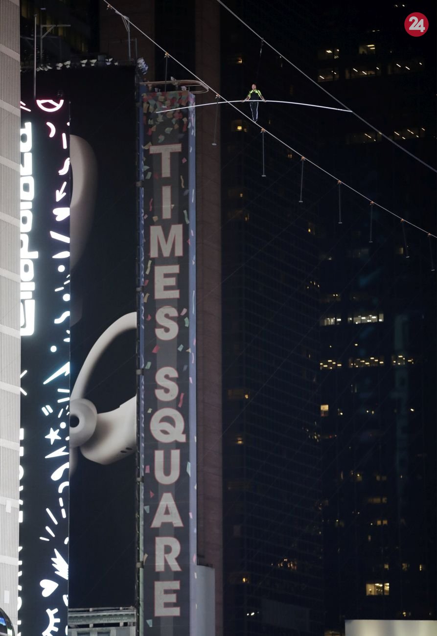 Galéria Nad newyorskou Times Square sa prechádzali povrazolezci